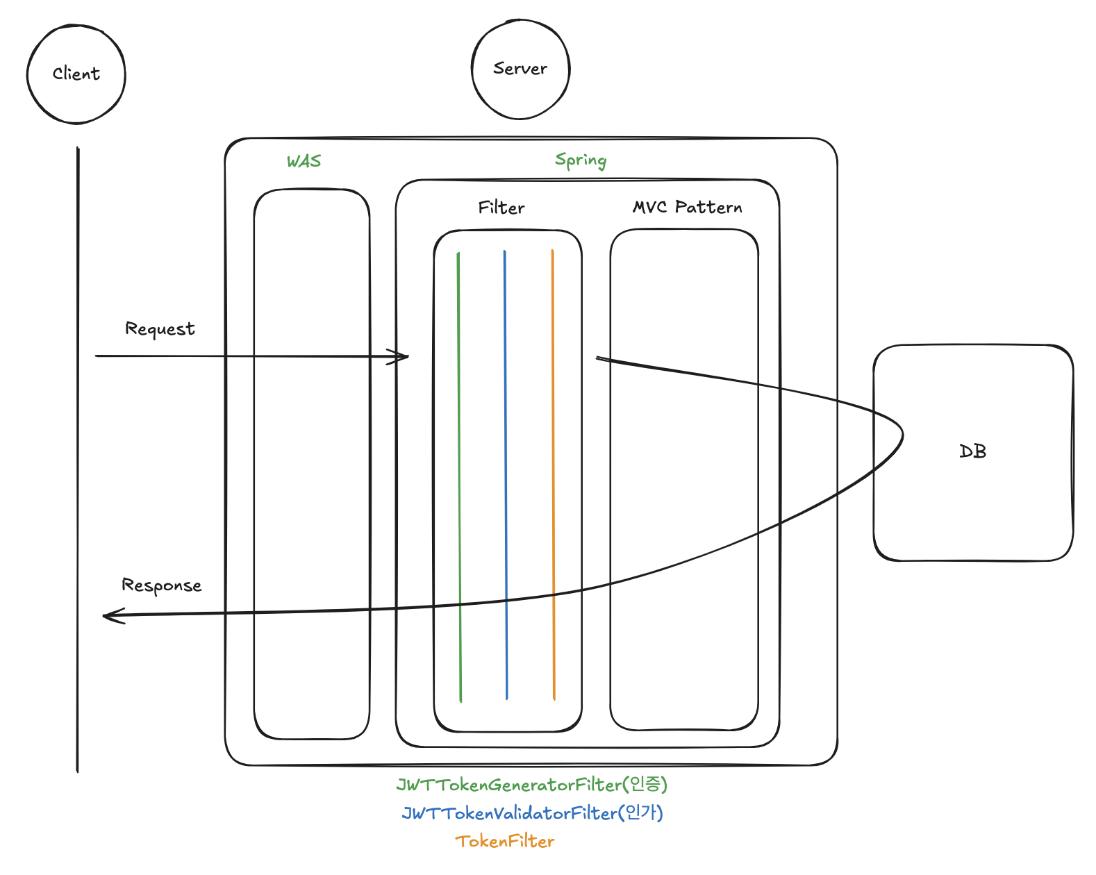ServerDB장점1. 수평 확장 좋음(서버 확장 설계 쉬움)2. 프레임워크로 수정 용이1. 네트워크 트래픽 저하2. 복잡한 쿼리 연산 속도 최적화 가능단점1. DB왕복 증가시 latency 상승2. CPU, Memory, IO부하(But, 캐싱 처리, 비동기 처리로 해결 가능)1. 소스코드와 같이 레이어가 나눠있지 않아 가독성이 낮다.(즉, 수정이 어렵다. ex. 프로시저)2. 서버 확장시 설계 난이도 Up Server의 역할비즈니스 로직 실행- 요청 검증/인증/권한 검사, 도메인 규칙 처리- 계산/변환/비즈니스 워크 플로우API 제공- REST/GraphQL 엔드포인트, gRPC 서비스- 입력값 파싱/응답 직렬화(JSON/XML 등)외부 연동- 메시지 큐(Kafka, RabbitMQ), 외부 API ..