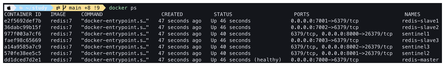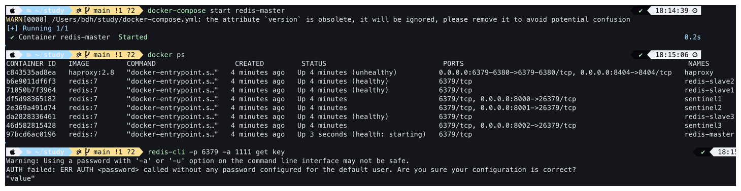 | Sentinel 1~3 | Master 감시 + 장애 발생 시 자동 failover 수행 |