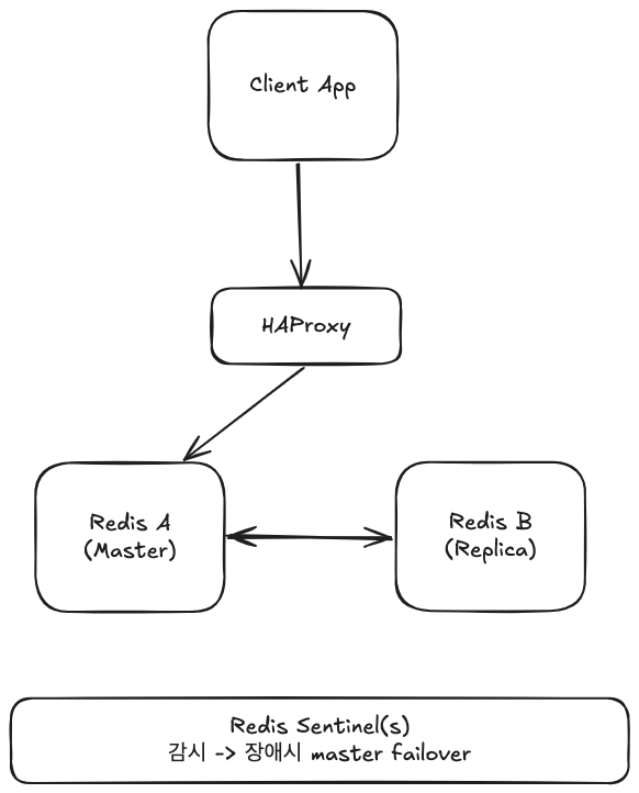 Master 장애 시 → Sentinel이 새 Master 승격 → HAProxy가 전환 필요
