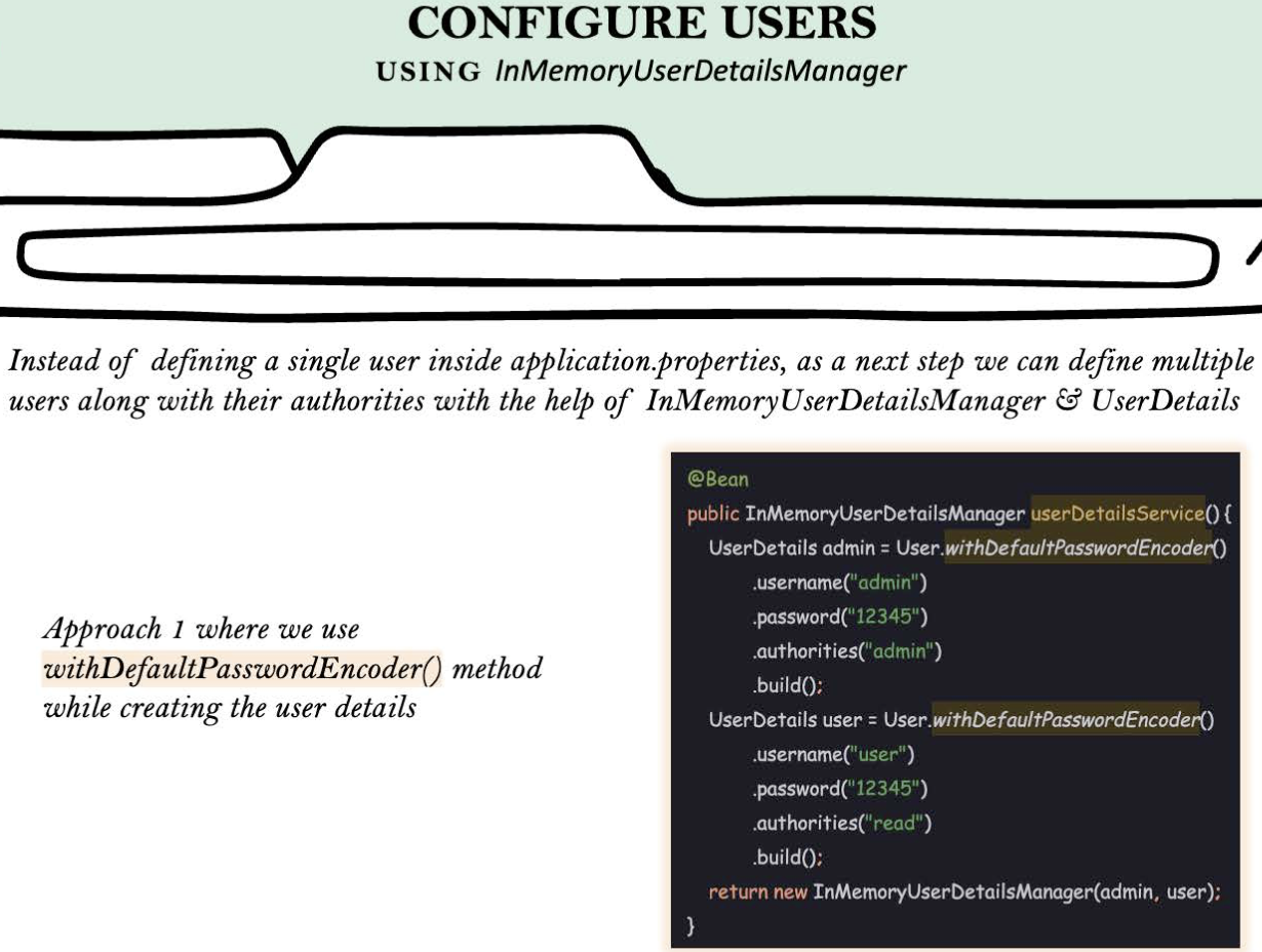 InMemoryUserDetailsManager: 메모리 내에서 사용자 정보를 관리합니다. 주로 개발 및 테스트에 사용됩니다.